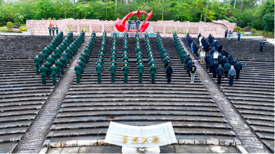 在雄壮庄严的国歌声中,全体师生代表与在营官兵代表在烈士名录墙前整齐列队,向革命英烈默哀致敬。校党委副书记林致远、校党委副书记廖志丹代表师生向烈士敬献花圈并整理挽联。全体师生面向纪念碑行三鞠躬礼,向革命英烈表达悼念和敬意。随后,师生依次缓步向前瞻仰烈士名录并敬献鲜花。师生们驻足凝望,在铭记历史中寄托哀思,厚植爱国情怀;在崇尚英雄中赓续红色血脉,汲取奋进力量。