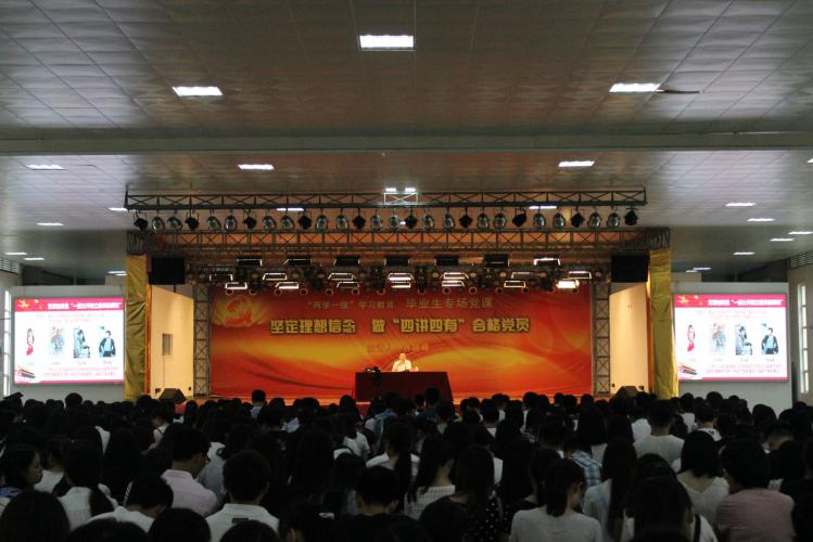 6月13日上午,在yl23455永利2016届学生毕业典礼结束之后,校党委书记林晓峰以《坚定理想信念,做“四讲四有”合格党员》为题,在龙文馆为700多名毕业生党员上了一堂生动的党课。组织部、宣传部、学工部、校团委及各院系的老师们也到场听讲。党课由校党委副书记吴彬镪主持。
