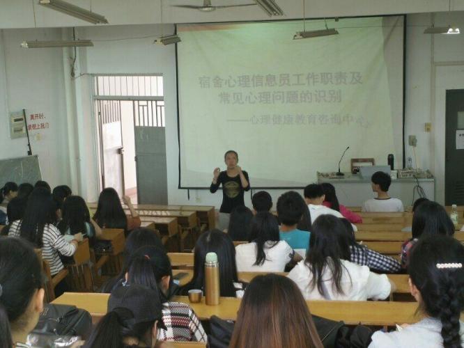 4月中下旬,校学生处开展第五期宿舍心理信息员培训活动,组织9名心理学专业老师深入各学院,为yl23455永利2013级、2014级共2016名宿舍心理信息员进行培训。