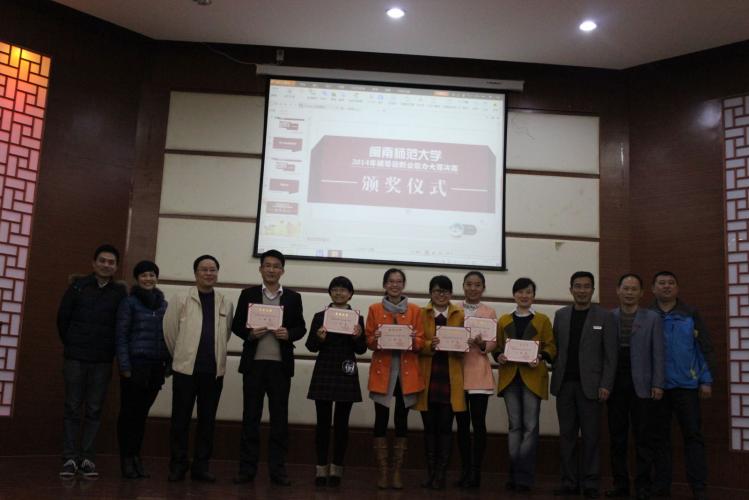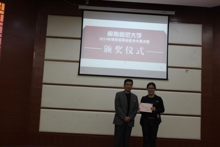最终,化学与环境学院陈慧燕获得一等奖,教育科学学院陈春慧、外国语学院罗立满、管理学院白秋纯3位老师获得二等奖,历史与社会发展学院阮莉、新闻传播学院许莹、邓拓、外国语学院李建民、化学与环境学院周翔、体育学院郑小贝等6位老师获得三等奖,7名辅导员获得优秀奖。在场的领导分别为获奖选手颁奖。