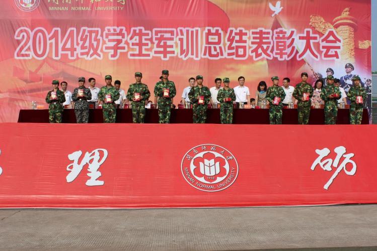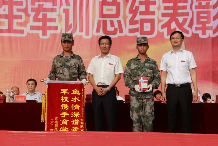 会上,学校领导向承训部队赠送锦旗,颁发优秀教官荣誉证书,宣读军训表彰决定。军校领导对军训中共涌现出25个军训先进集体、10个军体拳训练优胜班级、5个军训宣传先进单位、196间先进宿舍、415名军训积极分子颁发了奖牌和荣誉证书。