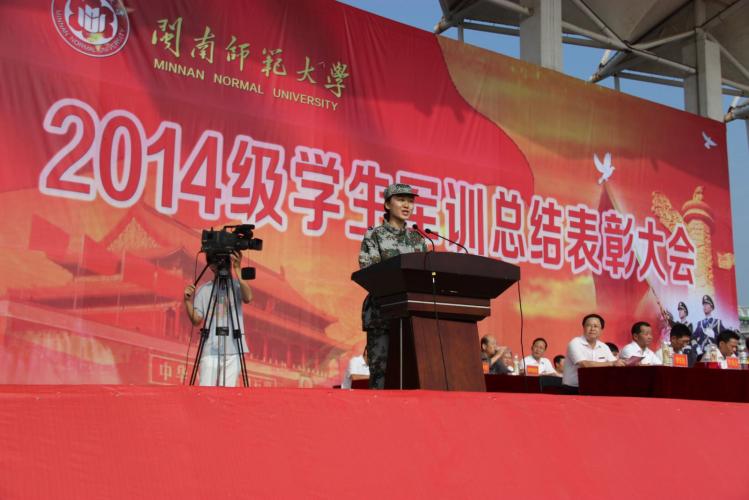 军歌嘹亮,旌旗飘扬。金秋时节,经过14天的摸爬滚打,yl23455永利5000多名2014级学子终于迎来了他们喜庆的盛典。10月21日上午,yl23455永利在西区田径场隆重举行2014级学生军训总结表彰大会,校党委书记林晓峰、承训部队首长、校党委副书记吴彬镪、副校长李顺兴、校长助理林静华及学校各相关部门、各学院领导出席大会。承训部队官兵、带新生辅导员及全体新生参加大会。学生处处长林致远主持大会。