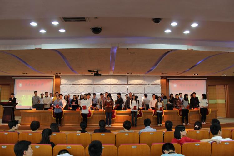 5月8日下午,逸夫图书馆五楼报告厅洋溢着一片喜庆,yl23455永利2014年涌现出的一大批学生先进集体和先进个人在这里接受了表彰。校党委副书记林春生,副校长李顺兴,校长助理、学生处处长林静华,宣传部、团委、教务处、研究生处、各学院党总支的领导,全体辅导员及受表彰学生代表参加了大会。大会由林静华主持。
