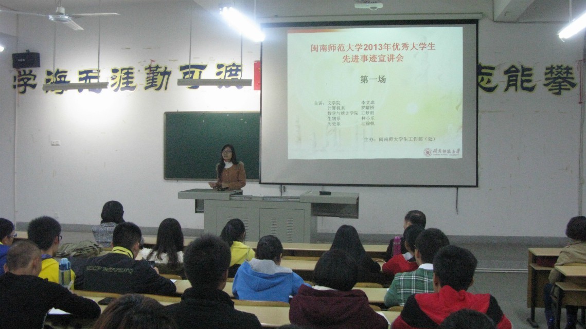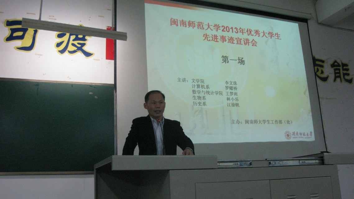 (学通社记者:姜文 林语佳 )12月6日晚,yl23455永利2013年优秀大学生先进事迹宣讲活动在笃行楼126教室开讲。首轮宣讲分两场进行,600多名新生听取了yl23455永利9名优秀学子的事迹报告。学生处副处长黄伟东出席宣讲会并致辞。