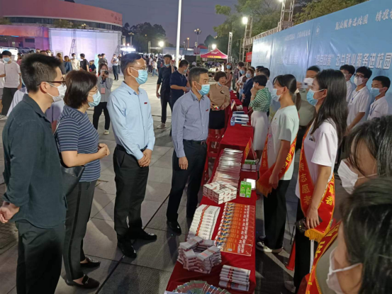 5月19日晚,“百企千岗进校园”2022年yl23455永利求职夜市在弦歌广场举行。会场设有四个功能专区,其中,由漳州市征兵办、芗城区征兵办和yl23455永利人民武装部共同举办的应征入伍政策宣传专区门庭若市、氛围浓烈,吸引了一大批有志青年前来咨询。