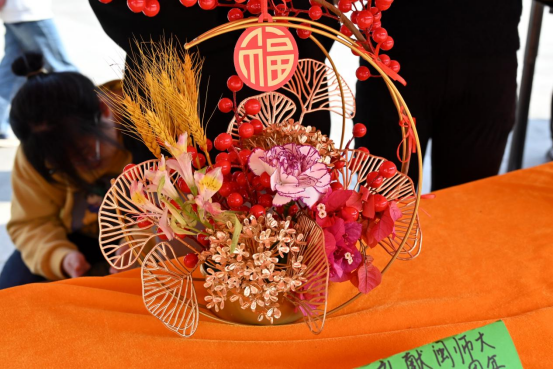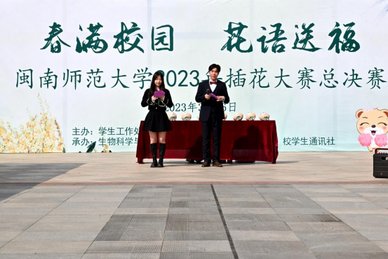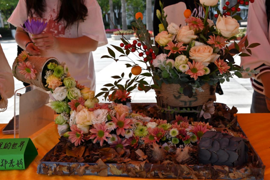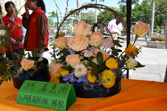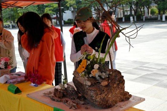 3月16日下午,由学生处和生物科学技术学院联合主办的2023年“春满校园,花语送福”插花大赛总决赛在弦歌广场成功举行。来自各学院的37件参赛作品进入总决赛现场进行展示,这些作品匠心独运、富有创意,表达了参赛选手对保护环境的思考和对学校生活的热爱。参赛选手现场进行1分钟的创作阐述,生物科学与技术学院园艺专业教师组成评委团队,现场对学生作品进行评分和点评。