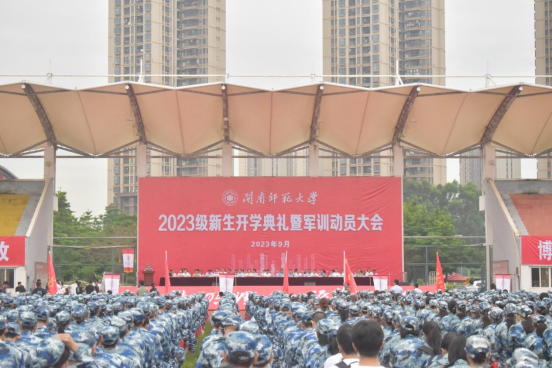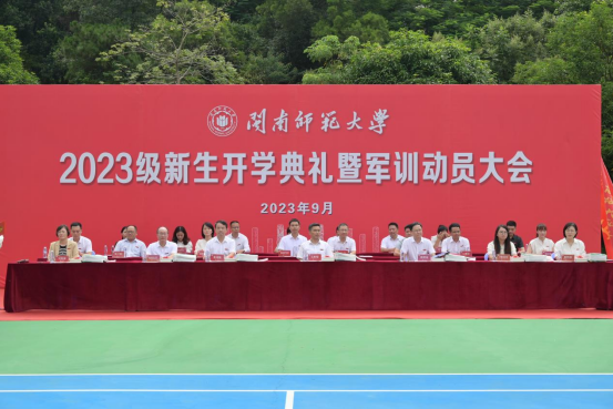 学校各机关、教辅单位主要负责人,各学院党政主要负责人、教师代表、新生辅导员和全体新生参加开学典礼暨军训动员大会。