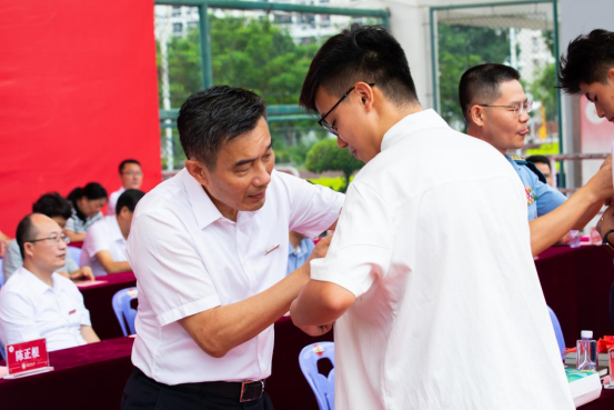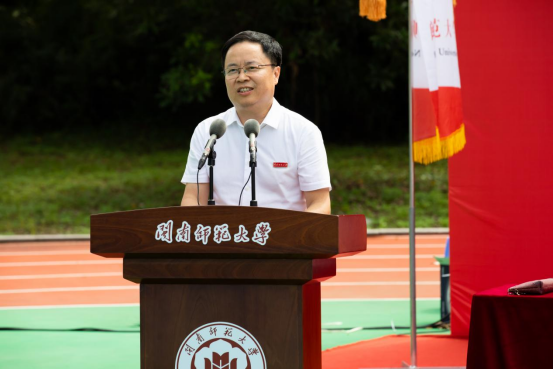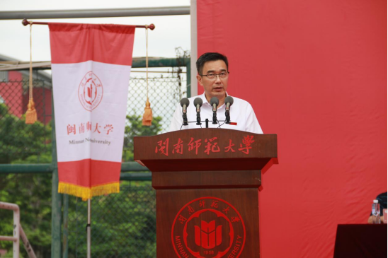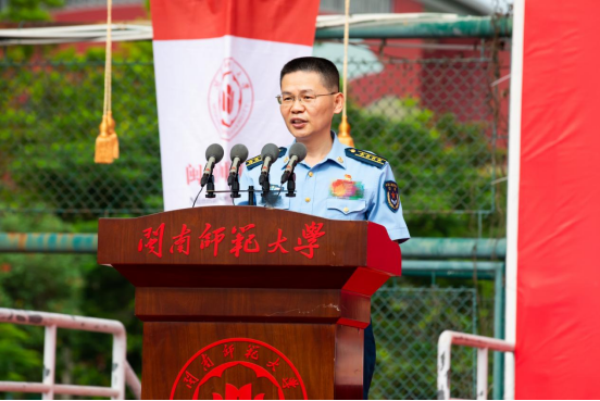 校党委书记吴彬镪作了题为《向下生根 向阳而行》的讲话。他指出,今年恰逢yl23455永利建校65周年、本科办学60周年、研究生办学20周年、更名大学10周年。在这一特殊的年份,学校迎来了5900多名新闽师人。一代代闽师人响应国家号召、顺应时代潮流,发展成了一所具有优秀办学传统、特殊战略价值的高校。他希望同学们深刻领悟“博学、明理、砺志、笃行”的校训内涵,把家国情怀刻在骨里,热爱我们的祖国,坚持自己的梦想,不忘来路和初心,浇筑理想信念的精神支柱。把自信自强记在心里,做好规划,保持努力,包容不同,涵养品格和毅力,拓宽通往未来的阳光大道。把知识能力学在手里,扎实专业基础形成积淀,突破惯性思维推动创新,适应时代需求锻造价值,打造实现跨越的强大引擎。他强调,在军训期间要一切听从指挥,挺起腰杆,鼓足底气,从严要求自己,克服娇气脾气,磨炼身心意志,增强集体荣誉感,坚持必胜的信念,展现新闽南师大人一往无前的精气神,向下生根,向阳而行,一笔一划勾勒青春最美的风景,谱写出人生最华丽的篇章。