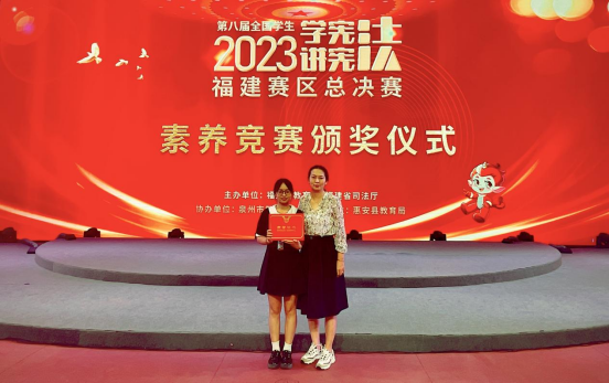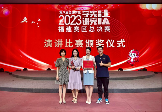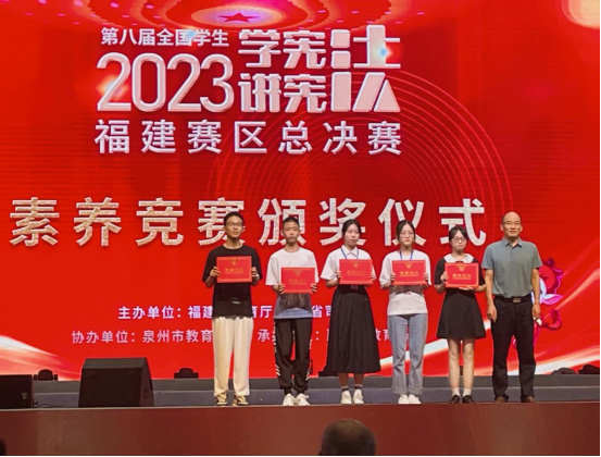 9月22日—24日,第八届全国学生“学宪法 讲宪法”福建赛区总决赛在泉州惠安举行。新闻传播学院2021级广播电视编导专业黄丹渠同学以全省第1名的好成绩荣获演讲比赛高校组一等奖,法学院2021级法学专业邱奕琪同学以全省第8名的好成绩荣获素养竞赛高校组优秀奖。