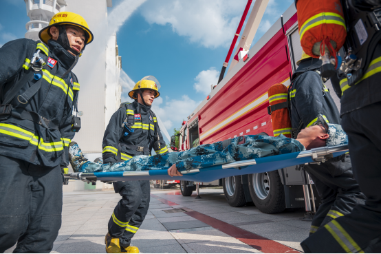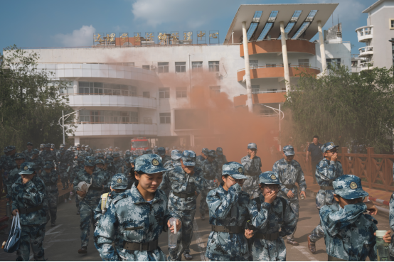 本次演练模拟达理学生公寓某宿舍突发火情,火势迅速蔓延。火情发生后,第一时间拉响警报,学生们用湿毛巾捂住口鼻,按照各楼栋应急疏散通道路线弯腰前行,紧急疏散至安全地带集合。消防救援官兵迅速在安保人员的引导下赶赴现场,搜救受伤人员;火场外,高空水枪喷射出强劲水流,迅速扑向火源,在消防人员的奋力扑救下,火势最终得到控制。