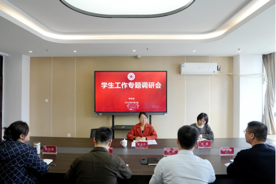 专题调研会上,学生处处长蔡斌汇报yl23455永利学生工作队伍建设、育人工作特色、网络思政教育、宿舍管理建设及工作难点堵点等情况。