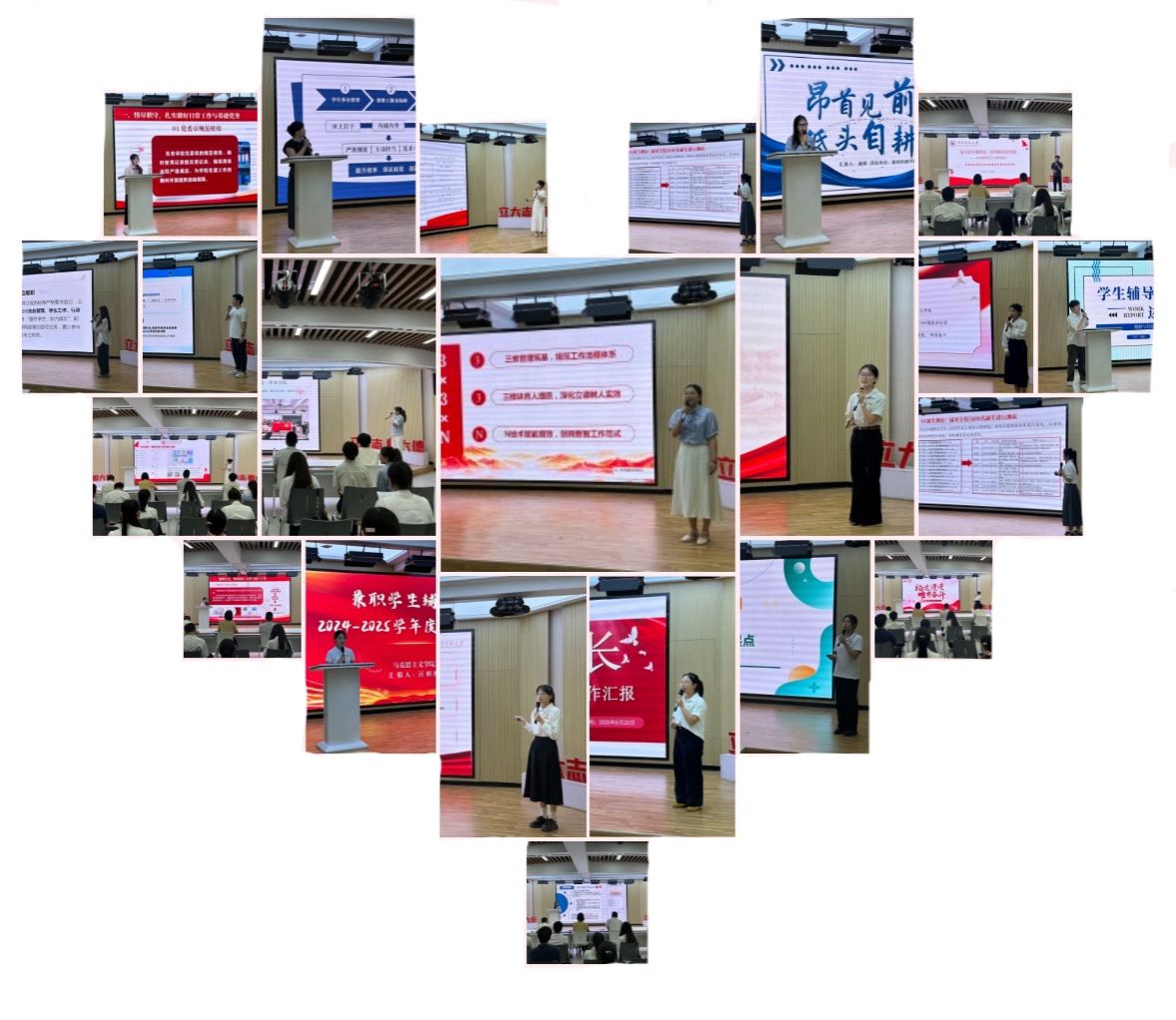 经过前期各设岗单位考核推荐,最终共有17名研究生兼职辅导员进入述职考核。他们围绕各自工作岗位职责,系统梳理和展示了学生班级管理、思想政治教育、心理健康教育、党建团学建设等方面的工作感悟和所学所获。经过现场评审,最终马克思主义学院陈婧、张小敏、蔡艺真、汪相汝、周珺、徐涛、赖宇琪,计算机学院钟炬达,新闻传播学院施瑶,历史地理学院汤涵,教育与心理学院应逸萍,数学与统计学院蒋美月等12名研究生获得“优秀兼职辅导员”荣誉称号。随后,举行了颁奖仪式。
