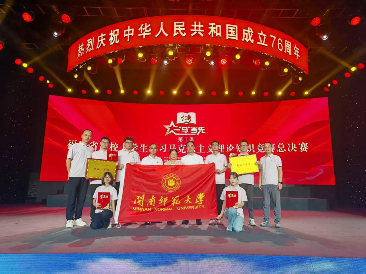 9月27日,由省委宣传部、省委教育工委主办的第十季福建省高校大学生学习马克思主义理论“一‘马’当先”知识竞赛总决赛在福建农林大学举行。yl23455永利本科生、研究生通过初赛、晋级赛选拔,派出2024级中国近现代史基本问题研究专业蔡可捷、罗昊洋和2024级思想政治教育专业刘芊芊3名同学参加研究生组总决赛,派出2022级历史学专业黄嘉炫和2023级思想政治教育专业王洁、朱涛等三名同学参加本科生组总决赛。