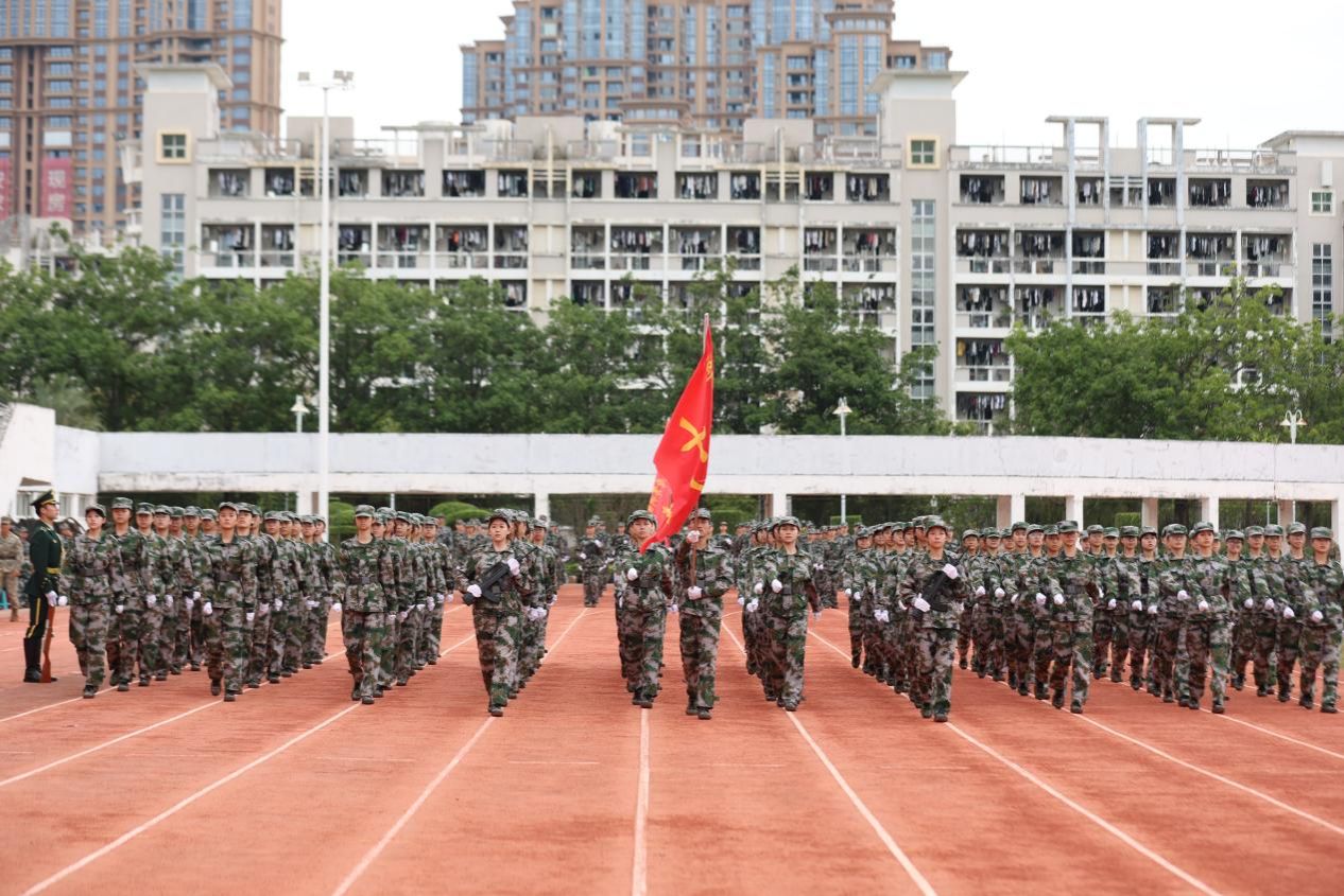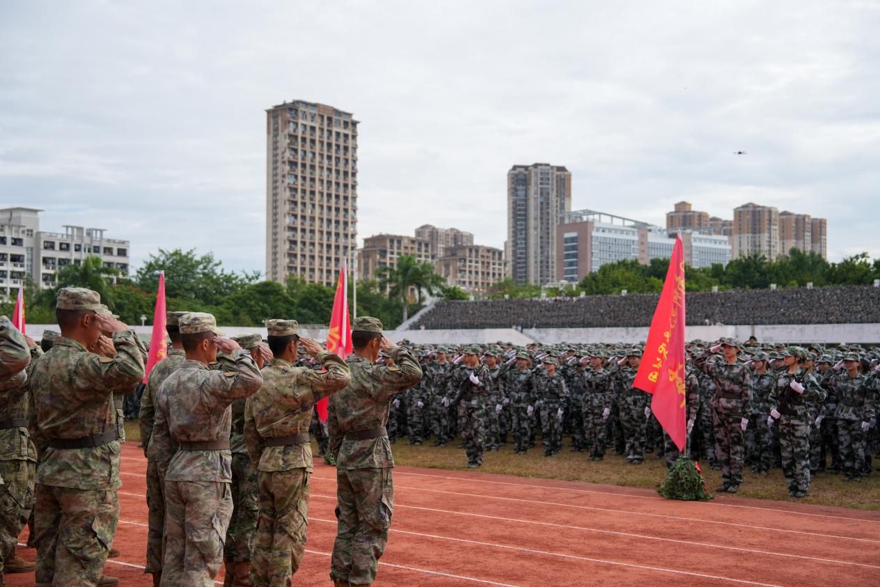 校党委副书记、校长张龙海在大会上发表讲话。他指出,军训是进入大学校园的一堂必修课,也是一场淬炼意志、砥砺品格的青春洗礼。军训时光虽然短暂,但能成为镌刻在同学们成长轨迹中的价值印记。他要求同学们以至诚报国的担当,不断拓展人生格局和精神高度。将个人的前途和国家、民族的命运紧紧地结合在一起,将美好青春投入到对祖国、民族和人民的无私奉献中。以坚忍不屈的执着,始终树立自强意识和正确航向。继续保持在军训中展现出来的拼搏奋斗姿态,善于在人生发展的各个阶段中,重新定义自己人生的新高度,在求知道路上勇攀高峰,在拼搏奋斗中砥砺未来。以博学慎思的智慧,坚持恪守纪律底线和笃实作风。把令行禁止、自律服从的优良作风带进全新的大学生活,养成按时作息、坚持锻炼的健康生活习惯,把自律作为求知问学的自我要求和砥砺人生品格、培养文明道德的行为规范,为实现人生价值奠定坚实的根基。
