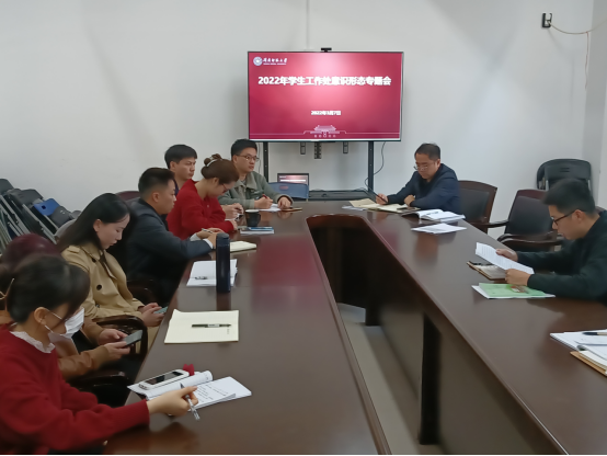 2022年3月7日下午,学生处在科技信息楼北1209召开2022年意识形态工作部署会。全体教师参加会议。