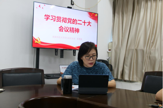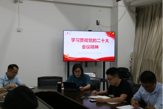 10月31日下午,学生处党支部在科技信息楼北1209会议室组织召开学习党的二十大精神专题学习会,正式启动系列活动。会上,支部副书记陈慧燕以《学习贯彻党的二十大精神》为题,为支部党员上专题党课。她从聚焦二十大、定位新发展、着力育新人、推进废改立、培育增长点、服务务实效等六个方面,启发党员同志把学习贯彻党的党的二十大精神与推进当前工作创新发展紧密结合,确保学习贯彻落到实处、凸显实效。