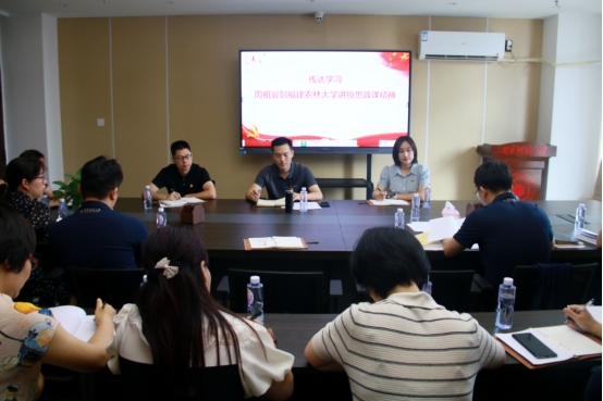 吴主敏同志领学了习近平总书记在文化传承发展座谈会上的重要讲话精神与福建省委书记周祖翼到福建农林大学讲授思政课的精神。吴主敏同志认为:高校在赓续历史文脉,谱写当代华章,建设中华民族现代文明中扮演着重要角色。要以媒体融合赋能思想政治教育,建强网络思想政治教育的主阵地,理直气壮唱响网上主旋律,将互联网这个最大的变量变为高校贯彻立德树人根本任务的最大增量。