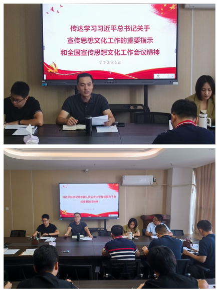 10月17日上午,学生处党支部在科技信息楼北1209党员活动室召开专题学习会,组织支部全体党员学习习近平总书记关于宣传思想文化工作的重要指示、全国宣传思想文化工作会议精神和习近平总书记给中国人民公安大学在读英烈子女的重要回信精神。会议由支部书记蔡斌主持。