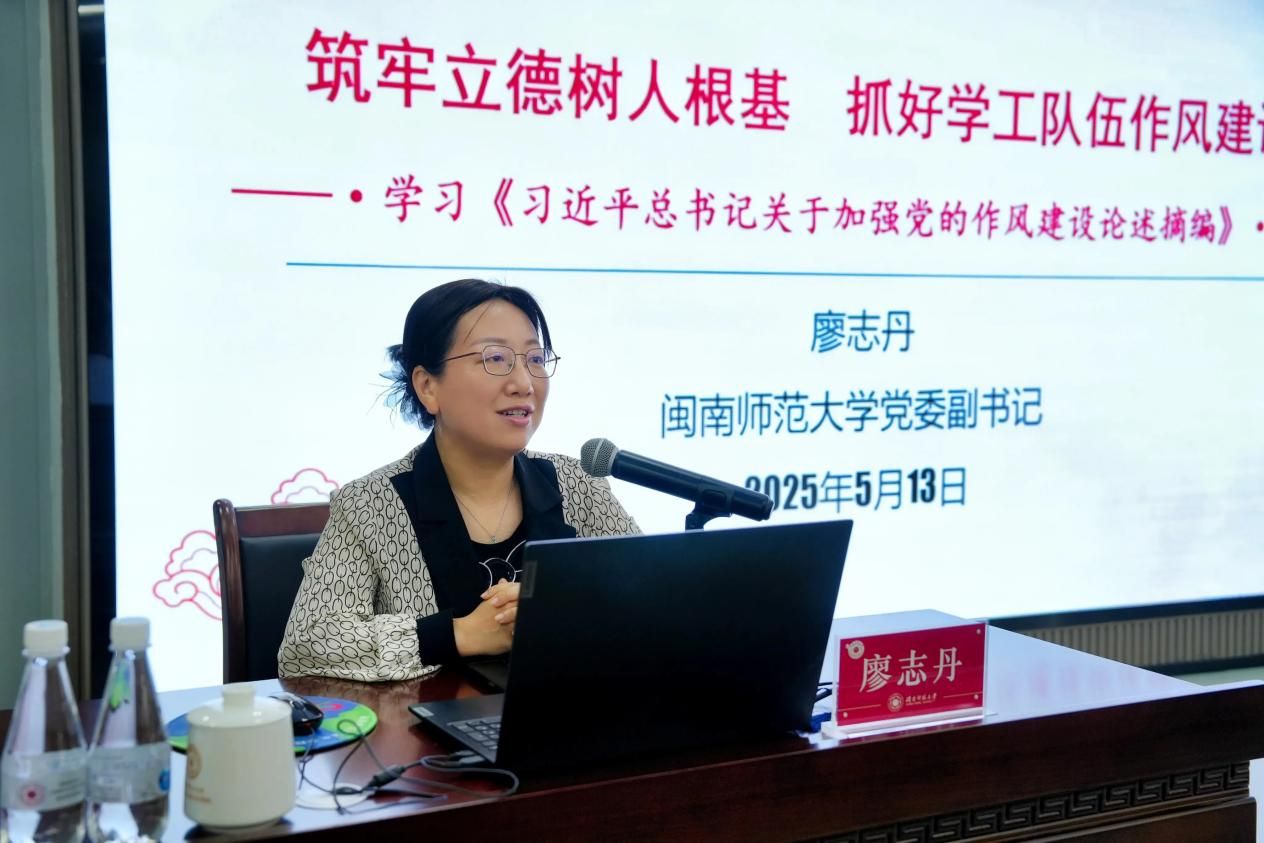 立德树人是新时代高等教育工作的逻辑起点,也是高校作风建设的重要使命。为进一步推动深入贯彻中央八项规定精神学习教育走深走实,加强和改进学工队伍作风建设,5月13日上午,校党委副书记廖志丹以《筑牢立德树人根基 抓好学工队伍作风建设》为题,在达理楼南206会议室为全体学工干部讲授深入贯彻中央八项规定精神学习教育专题党课。学生处及校团委全体教师、各学院分管学生工作副书记、全体辅导员参加听讲。