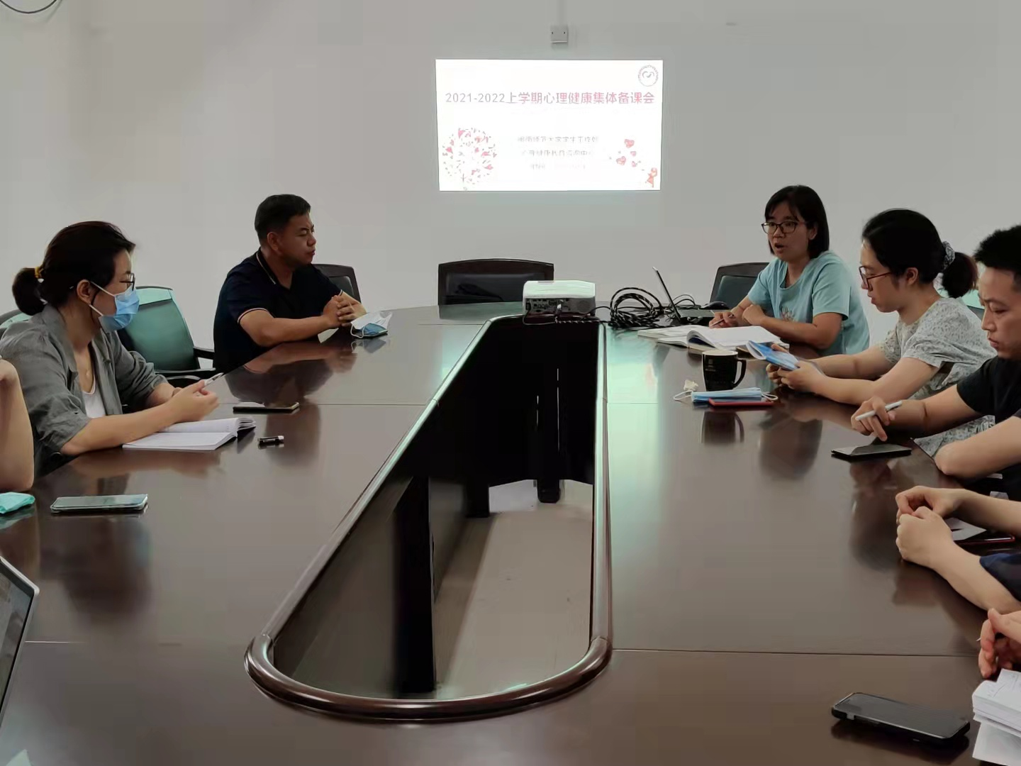2021年10月4日,在科技楼北1209开展了大学生心理健康教育集体备课会。备课会由陈虹老师主持,十余位老师参与了此次备课会。