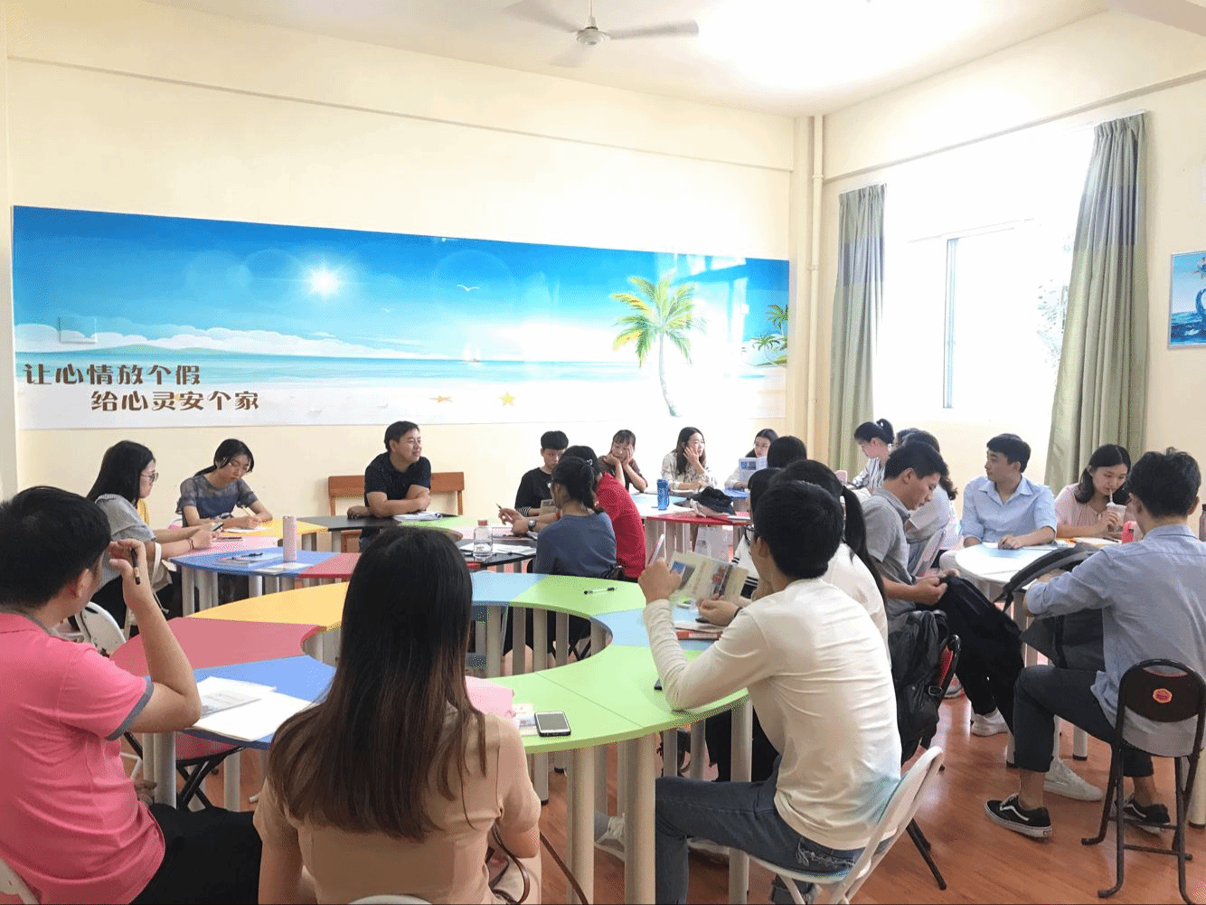 第一部分,王老师全面的讲解了本学期朋辈培训的意义、作用、目标和具体要求以及注意事项;系统的介绍了本学期6次朋辈活动的主题安排,生动形象地解析了每个主题的内涵和策划方案的设计,并讲解了一些活动如:“镜中人”、“搜救船故事”等拓宽了带领活动的思路。第二部分的新生班级团辅,以增强班级凝聚力、增强认同感、归属感为团辅目的进行培训,最后完成四次班级团辅的主题确定。
