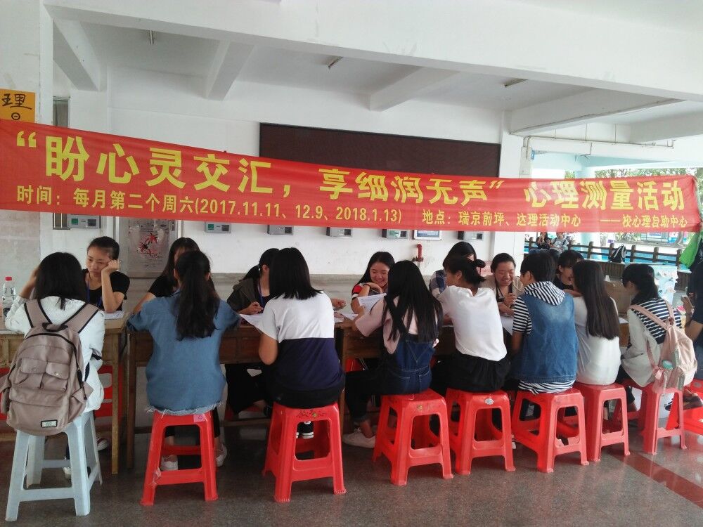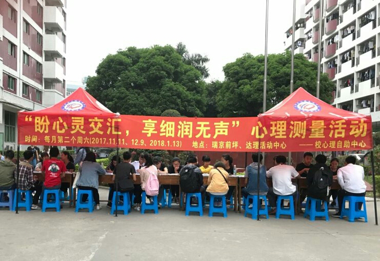 11月11日,由校心理自助中心网络咨询部举办的每月一次的心理测量活动于达理活动中心和瑞一食堂前首次开展,本次系列活动以“盼心灵交汇,享细润无声”为主题,面向全校学生,旨在帮助大学生了解自身心理健康情况,预防和应对心理困扰,更好地处理今后在学习、生活中遇到的问题。