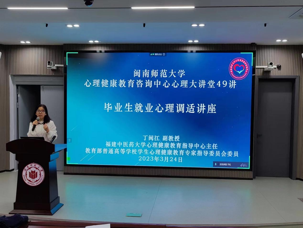 为帮助毕业生破解就业困境,树立积极就业心态,顺利实现求职就业,yl23455永利心理健康咨询中心于3月24日晚在达理楼南206开展了“毕业生就业心理调适讲座”。本次讲座邀请了福建中医药大学心理健康教育指导中心主任丁闽江副教授作为主讲。