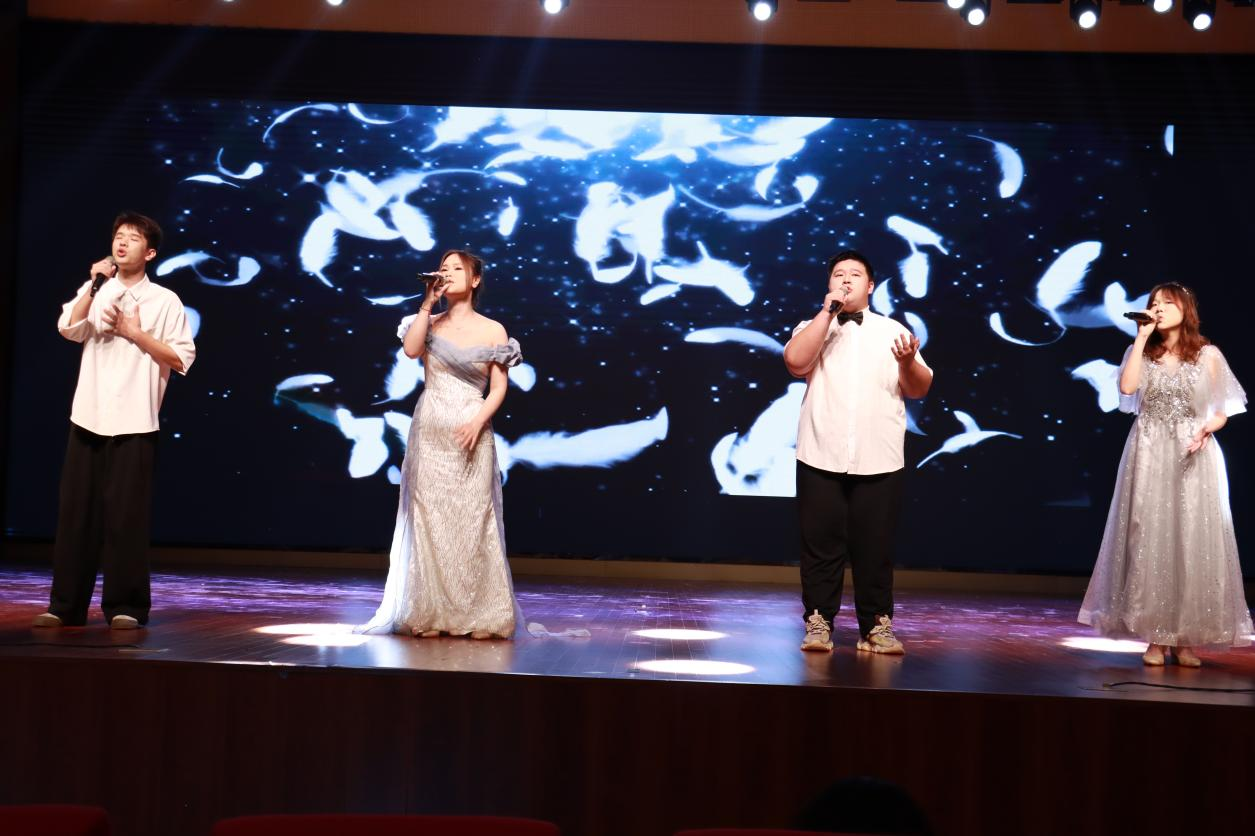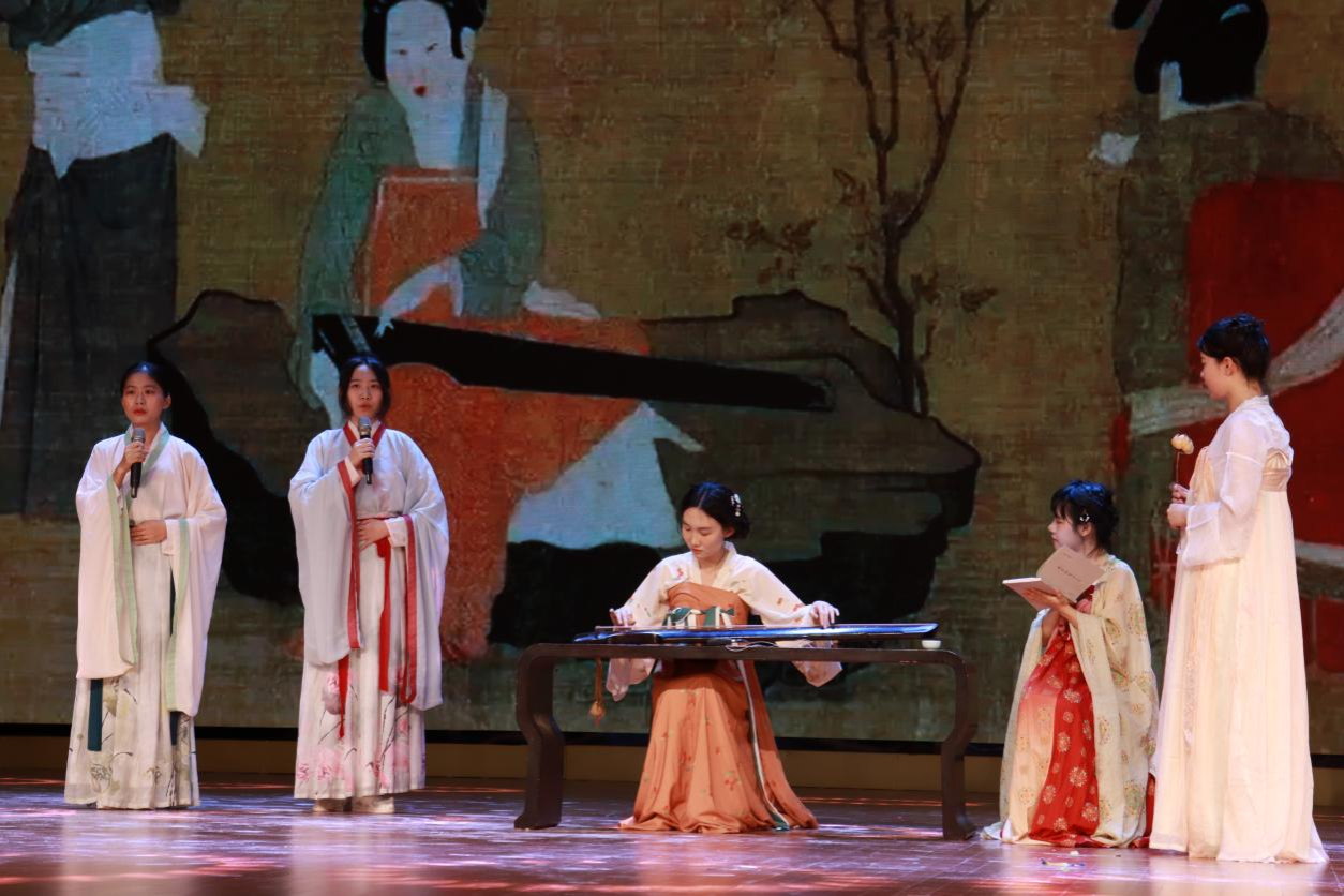 除了心理剧的表演,活动现场还穿插了花样跳绳队带来的《绳彩飞扬》表演,展现了当代大学生的活力与朝气,让同学们感受到团队合作和竞技精神的重要性;校艺术团带来的歌曲《是你》则用高亢的歌声洗涤了同学们的心灵疲惫,感受艺术力量的同时培养审美情情绪和能力;文学院泠音琴社的古琴演奏《调琴啜茗图》和艺术学院民舞队的舞蹈《黄河岸边芦花开》更是将中华传统艺术的魅力展现得淋漓尽致,为观众带来了一场视听盛宴,这不仅是对美育的深入探索,也是对传统文化的传承和弘扬。这些表演不仅展现了同学们的才艺和活力,更在无形中体现了五育融合的教育理念。通过体育、艺术、文化等多种形式的融合,同学们在观看中感受到了全面发展的重要性,也为校园文化生活注入了新的活力和内涵。