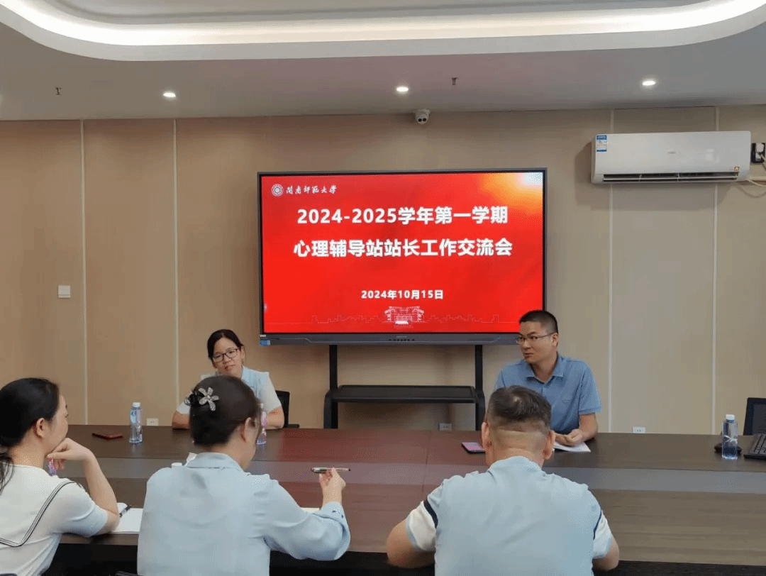 10月15日下午16时,学生处心理健康教育咨询中心在科技楼北1209室召开2024-2025学年第一学期心理辅导站站长工作交流会。学生处副处长林正锋、心理健康教育咨询中心专职老师和各学院心理辅导站站长参加此次会议。