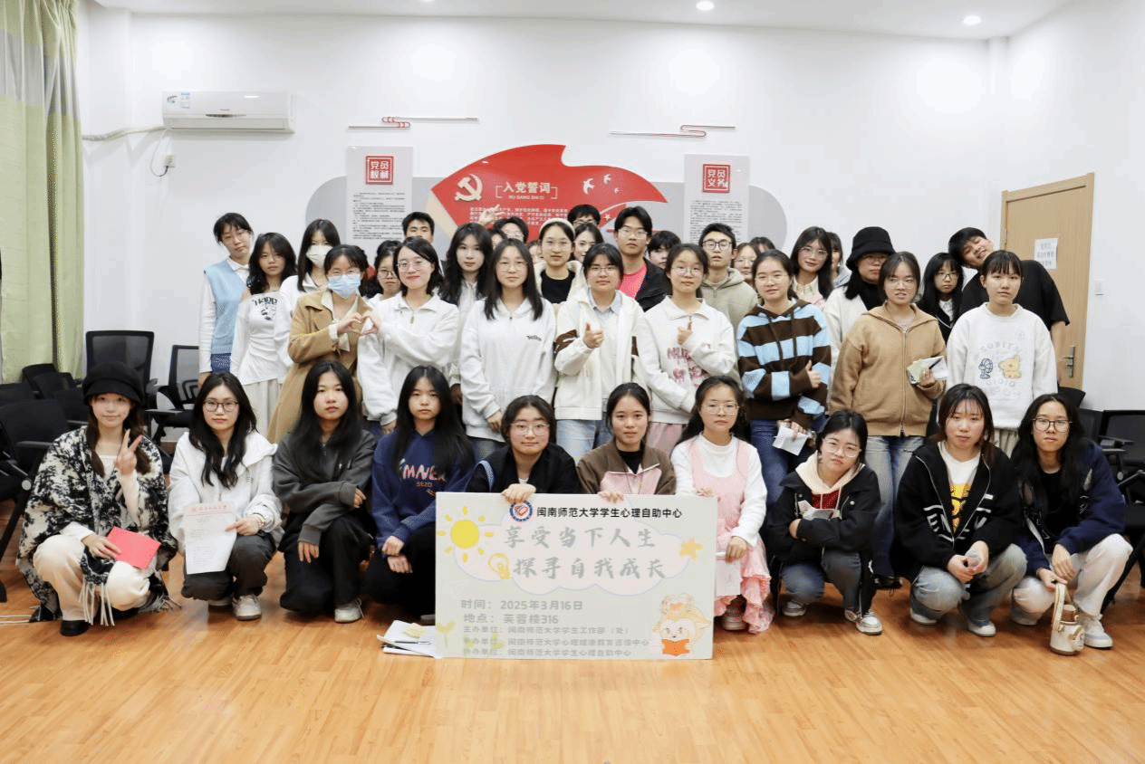 为帮助同学们更好地认识和悦纳自我,在感受生活中不断成长和进步,心理健康教育咨询中心于3月16日晚在芙蓉楼316室举办“享受当下人生,探寻自我成长”主题沙龙活动。活动由心理学研究生朱建英、陈丹璐学姐带领,来自各学院的42位同学参加。