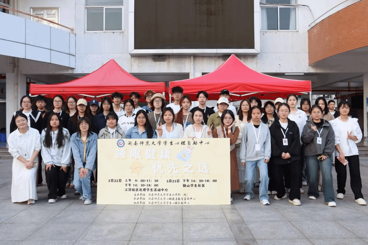 为引起大学生对睡眠的重视,传播睡眠知识、改善睡眠质量,心理健康教育咨询中心于3月22日及23日下午分别在北江滨校区达理学生活动管理中心一楼和圆山校区篮球场开展以“睡眠健康,优先之选”为主题的第25个世界睡眠日活动。
