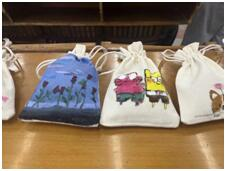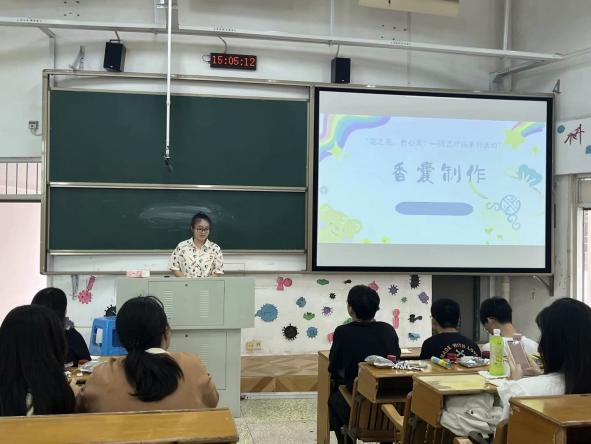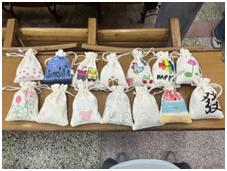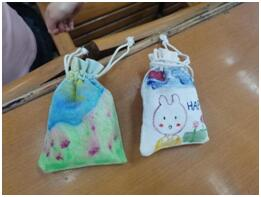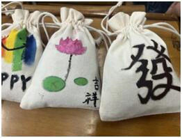 同学们认真聆听、仔细观看制作教程,随后,在志愿者的引导、帮助下运用画笔,颜料等工具,发挥自己的想象力与创造力,将自己的创意与巧思融入香囊袋装饰中,再自由搭配把香料放进袋子里,制作出一个个精致的独一无二的香囊作品。大家互相欣赏,彼此交换,以此表达美好的祝福。