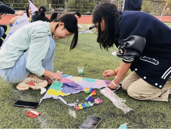 系列活动分别以不同自然体验为主题有序开展:“声音地图”活动引导学生聆听自然声响,感知生命律动,培养从容心态;“静心营”通过正念冥想与曼陀罗绘画,助力学生减少情绪内耗,激发内在成长动力;“日光浴”瑜伽练习使学生在运动中舒展身心,提升专注与情绪调节能力;“自然创作”鼓励学生利用落叶、飞花等自然材料进行艺术表达,增强沟通与自我安抚能力;“风体验”则借助书写和放飞风筝,帮助学生释放压力、认同自我价值,感知生活的多样可能。